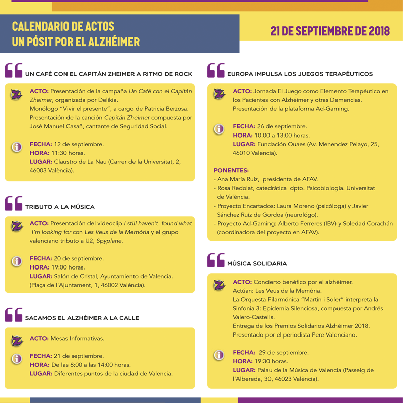 A continuación se puede ver el calendario de actos "Un pósit por el alzhéimer".