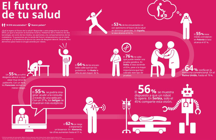 En cuanto a la robotización de las operaciones quirúrgicas, España e Italia las miran con buenos ojos. De hecho, el estudio afirma que “una ligera mayoría (56 por ciento) se imagina en tal situación”. En este sentido, la población masculina está más abierta a la cirugía robótica que las mujeres. Al 63 por ciento de los hombres no les importaría ser atendidos por el “Dr. Robot” en comparación con solo el 49 por ciento de las mujeres. Sorprendentemente, las personas mayores de 50 años (61 por ciento) están más abiertas a la cirugía robótica que los menores de 35 años (50 por ciento). En comparación con Italia, donde el 66 por ciento se sometería al bisturí de un robot, la población serbia es más cautelosa con estos avances quirúrgicos innovadores (45 por ciento).