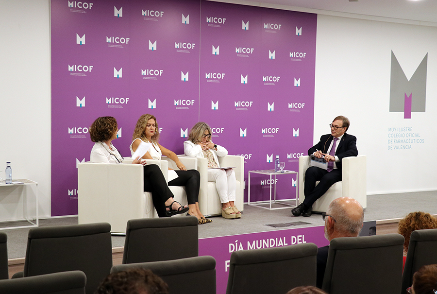 El tercer y último coloquio ha promovido el debate entre representantes de las modalidades farmacéuticas de farmacia comunitaria, farmacia hospitalaria y farmacia de atención primaria. Moderadas por el secretario del MICOF, Vicente Colomer, la presidenta de la Sociedad Española de Farmacia Familiar y Comunitaria (SEFAC) de la Comunidad Valenciana, Maite Climent, la tesorera de la Sociedad Valenciana de Farmacia Hospitalaria (SVFH), Belén Montañés, y  la vocal de la Comunidad Valenciana de la Sociedad Española de Farmacéuticos de Atención Primaria (SEFAP), Miriam Calvo, han debatido sobre la importancia de la comunicación entre las distintas modalidades profesionales para asegurar una continuidad asistencial en beneficio del paciente.