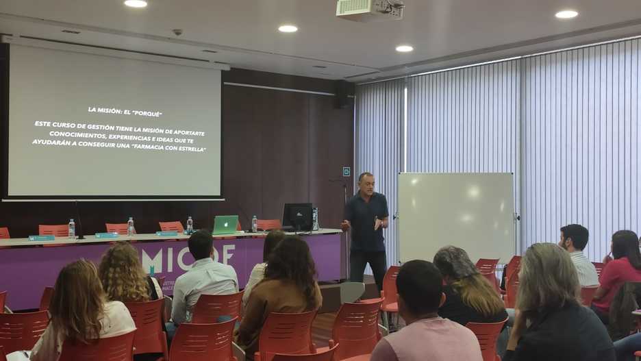 La sede de Paterna del MICOF ha acogido esta tarde la primera de las siete sesiones de cuatro horas de duración de un Curso Acelerado de Gestión de la Farmacia que tiene como objetivo adquirir unos conocimientos básicos en la gestión de Oficina de Farmacia, así como las estrategias y herramientas que permitan enfocar la gestión de la Oficina de Farmacia desde una perspectiva global.