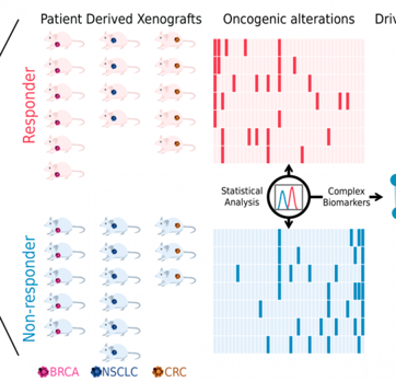 Aunque hay muchos datos disponibles de genomas del cáncer, no hay tanta información sobre el resultado de las intervenciones terapéuticas en pacientes. Los investigadores partieron de una base de datos pública que recoge información sobre el efecto de múltiples tratamientos sobre el crecimiento de tumores humanos que han sido implantados en un modelo de ratón. Partiendo de estos datos, seleccionaron 53 tratamientos (o combinaciones de tratamientos) y compararon el perfil molecular de los tumores que respondían a cada tratamiento y los que no.