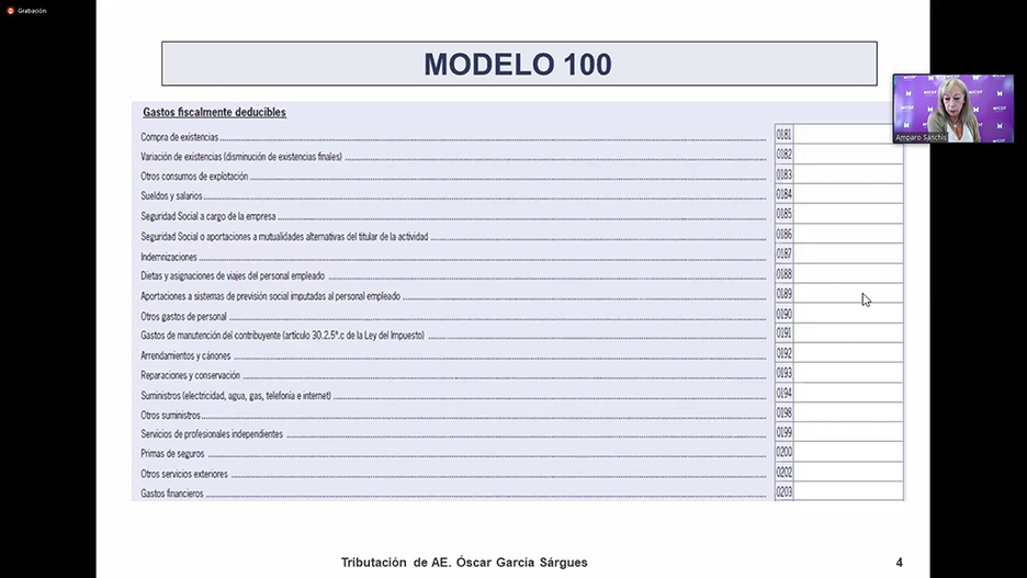 Asimismo, Óscar García también ha hecho un repaso en lo que respecta a la imputación temporal (Regla general: devengo, Regla especial de cobros y pagos), a los rendimientos obtenidos en atribución de rentas (rendimiento neto, minoraciones aplicables, provisiones deducibles, reducción aplicable…), a los elementos afectos, a la transmisión de negocio y a los gastos deducibles (gastos de comidas, teléfonos móviles o fijos, seguros de enfermedad…). Todo ello, a medida que se iban resolviendo las dudas que los asistentes virtuales han ido preguntando a través del chat de la plataforma zoom.