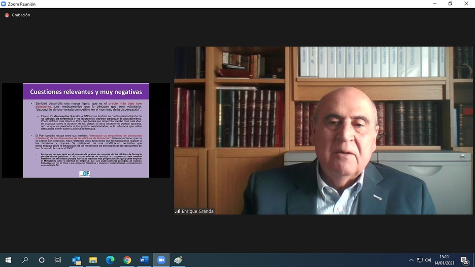 Esta tarde el Colegio, en colaboración con GrandaFarm, ha celebrado el webinar ‘Genéricos, copago y precios notificados’, una sesión online en la que los colegiados inscritos han podido informarse de tres cuestiones que pueden afectar a la economía de las farmacias a partir de este año 2021: el mercado de genéricos y biosimilares, la próxima reforma del copago y los precios notificados.