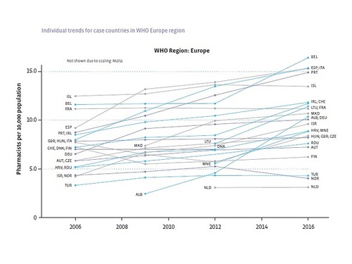 Un informe de la Federación Internacional Farmacéutica (FIP) predice un aumento del 40 por ciento en el número de farmacéuticos hasta 2030 (desde 2016).