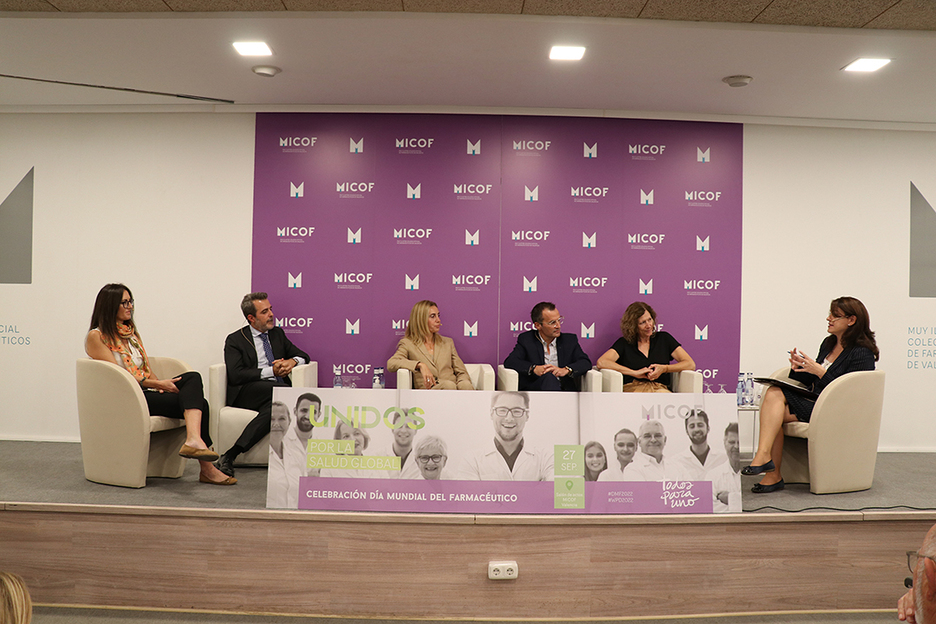 El encuentro se ha centrado en una mesa redonda, moderada por la farmacéutica comunitaria y vocal de Deontología y Relaciones Internacionales del MICOF, Victoria González de Buitrago, para poner en valor los diferentes modelos de la profesión farmacéutica. En ella han participado la farmacéutica comunitaria y vocal de Óptica y Audiometría de la Comisión de Farmacia Comunitaria del MICOF, Candelaria Almenar Monterde; el Jefe de Servicio de Farmacia del Hospital General Universitario de Castellón y presidente de la Sociedad Valenciana de Farmacia Hospitalaria, Raúl Ferrando Piqueres; la Directora Técnica Farmacéutica FS Puzol y Responsable de Validaciones de Linde Gas España, Gemma Rubert Raga; la farmacéutica de Salud Pública de la Subdirección General de Seguridad Alimentaria y Laboratorios de Salud Pública, Claudia McAllister Bykaluk; y el Secretario del Consejo Rector de Cofares, Juan Blanco Vicente.