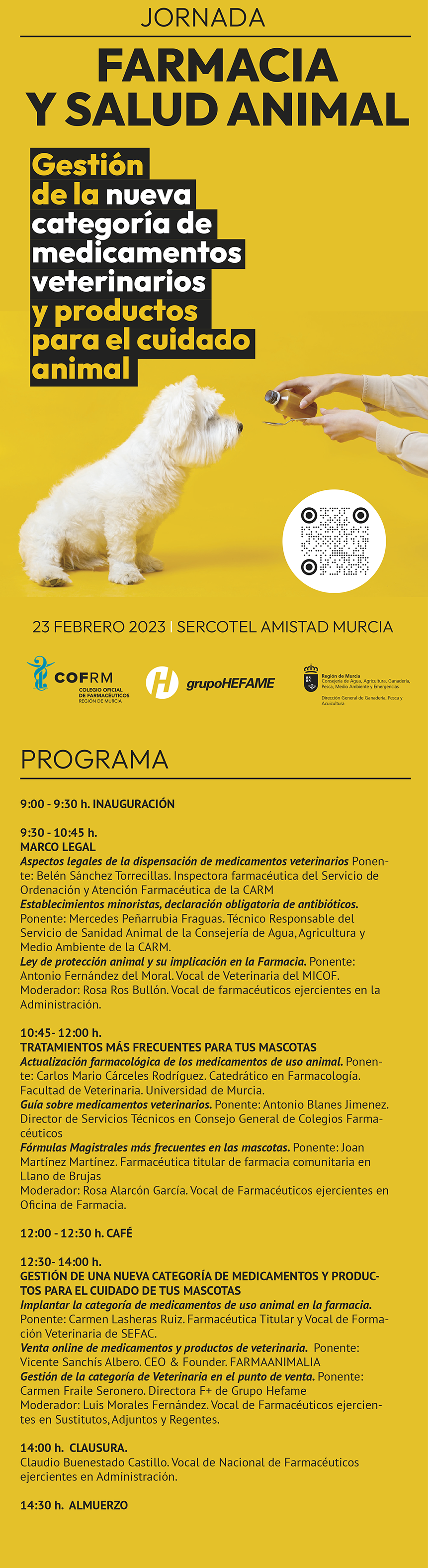 El Colegio de Farmacéuticos de la Región de Murcia y el Grupo Hefame organizan el próximo 23 de febrero la ‘Jornada de Farmacia y Salud Animal: situación actual, clínica y gestión’ que se celebrará en el Sercotel Amistad Murcia.