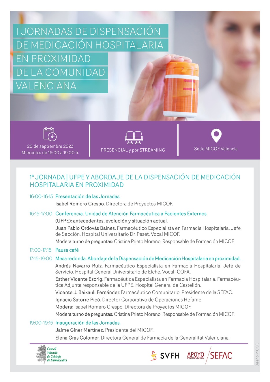 1ª JORNADA | UFPE y abordaje de la dispensación de Medicación Hospitalaria en proximidad | 20 de septiembre | MICOF Valencia