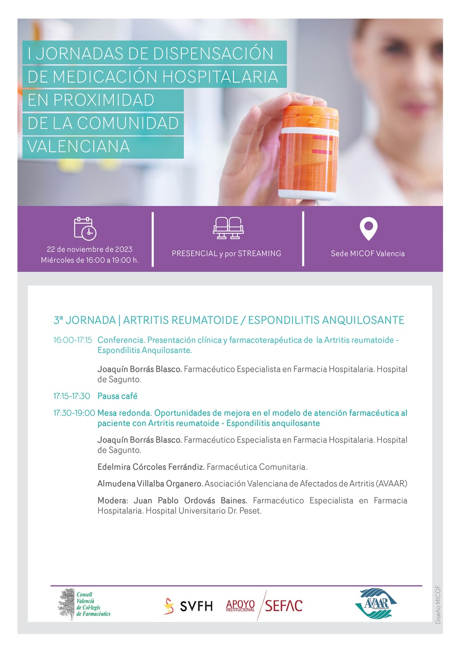 3ª JORNADA | ARTRITIS REUMATOIDE - ESPONDILITIS ANQUILOSANTE | 22 de noviembre | MICOF Valencia