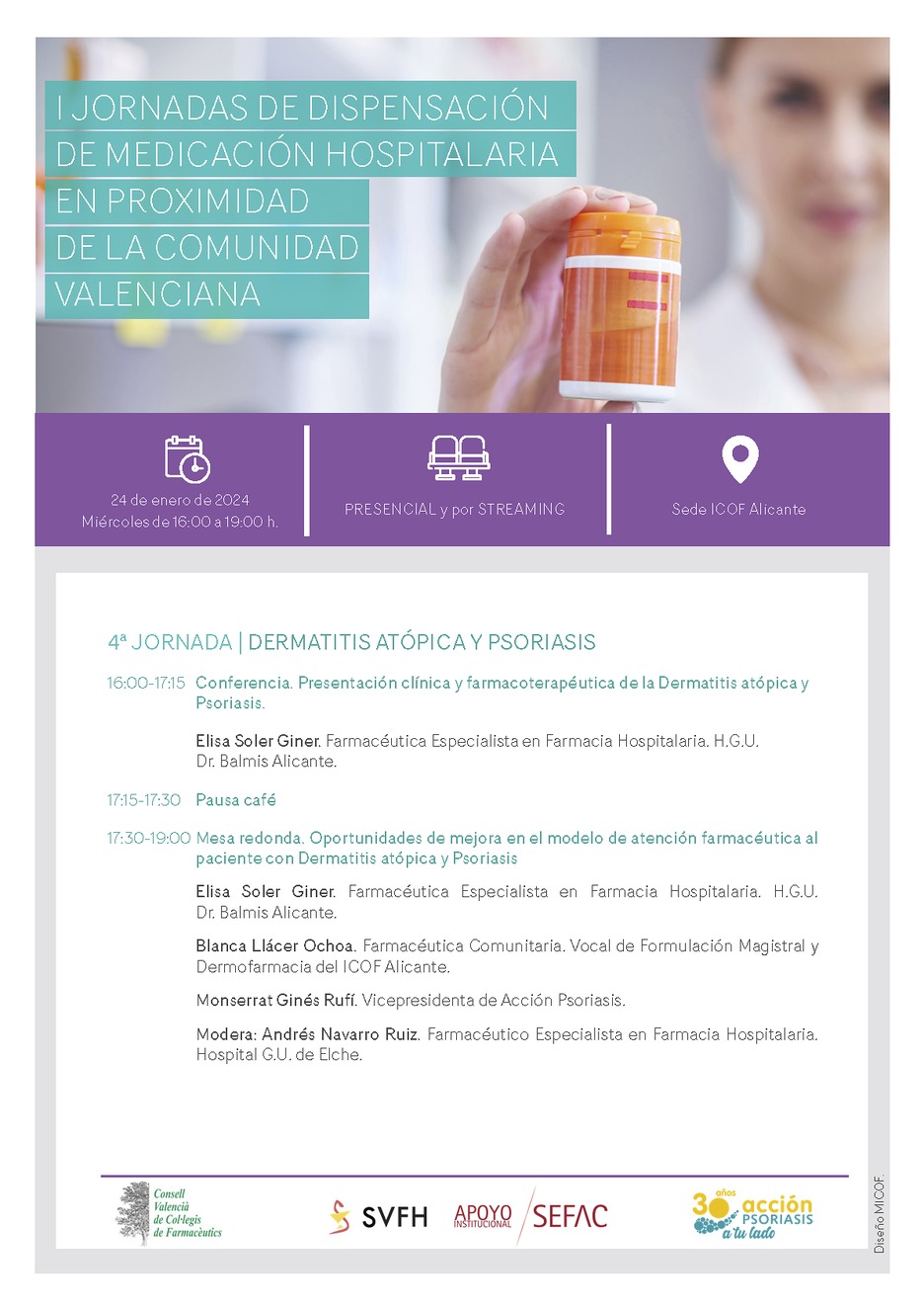 4ª JORNADA | DERMATITIS ATÓPICA - PSORIASIS | 24 de enero | ICOF Alicante